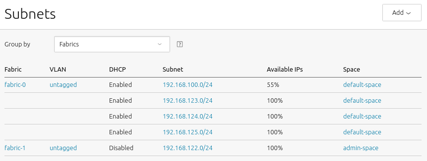 In the above, we see that VLANs are used to associate spaces with subnets. It is also clear that multi-subnet spaces are supported.