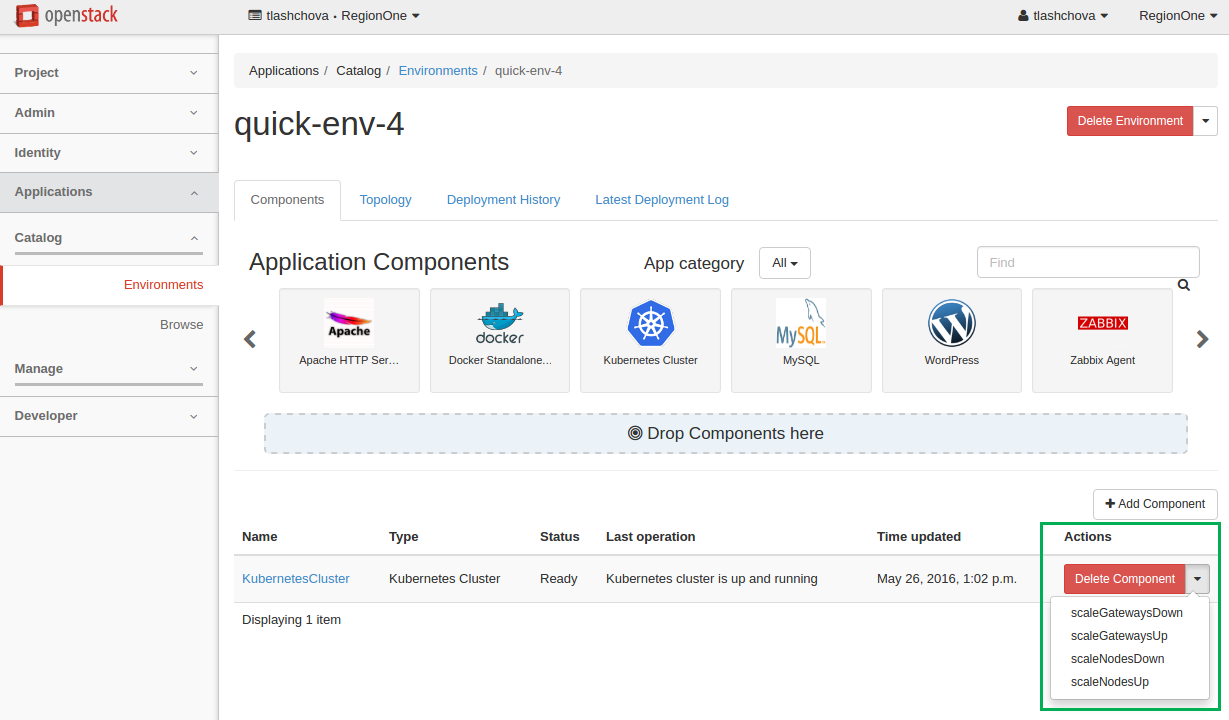 In OpenStack dashboard, navigate to Applications > Catalog > Environments.