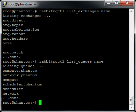 The figure below shows the status of a RabbitMQ node after Nova components’ bootstrap in a test environment. Exchanges and queues being created by Nova components are: